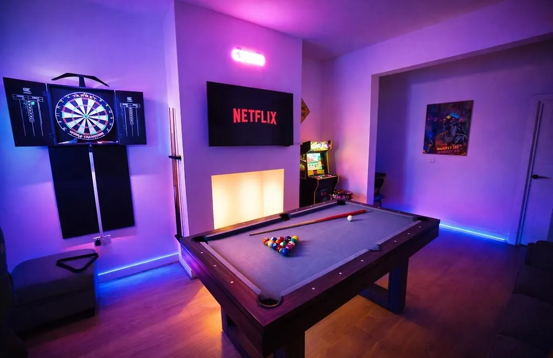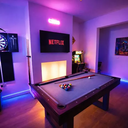 De gesitueerde in Manchester Game Zone, Trafford Centre Nearby, Sleeps 8 Villa Manchester biedt snelle toegang tot bezienswaardigheden in de stad, zoals The Lancastrian Theatre Organ Trust, dat op 5-minuten loopafstand ligt. Gasten kunnen genieten van darten in de gelegen in de Salford wijk villa, gelegen op afstand van 7 km tot het Museum van Wetenschap & Industrie.